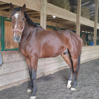 We have had Ox in the barn for a few months... when he came in he was scared of his own shadow, not people friendly, and just mentally VERY immature and flighty... We gave him time to adapt and to grow a bit with an older/more mature friend on 24 hr turnout and gradually brought him back in to a stall routine where he had to so things and be brave on his own. He really has surprised us and has turned into one of the most loving horses in the entire barn.. his trust is there but he does fees off of your confidence or your fear.... bc of this he will only go to a very educated home who is willing to go slow and steady and understands you cannot rush the mental maturity of a horse and it has to be at their pace. Today he followed me around the arena like a dog, that says a lot when you look back a few months ago to the horse that would turn to the back of the stall out of fear and kick if he thought he was in danger. This horse is NOT a mean horse, he truly doesnt have a mean bone in his body he just needs his person to help him along the way. Barefoot and comfortable, he is a relatively easy keeper all the way around. Hasnt had a ton of trailering experience, but what he has had he hasnt caused problems. Stands well for the farrier to be trimmed, I cannot vouch for shoes. Has no vices! He does have a small hernia on his belly, doesnt bother him or cause any discomfort. I dont know the story behind it.