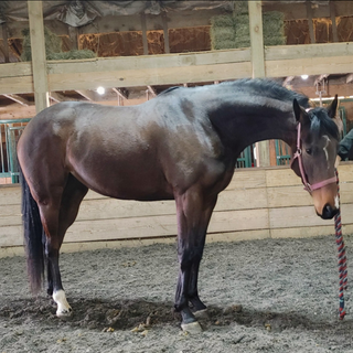 Minkie is adorable. She is a beefy girl and so compact and athletic! Has the worlds smallest old bow but it is cold and tight. Beautiful trot and so uphill, SO MUCH potential here. Great manners, overall a very quiet girl (can have some get up and go under saddle if asked) good stall manners! Loads well, trailers great and has no vices or behavioral issues. Confident Amateur friendly, not spooky and has more of a bold personality. No off track rides. We are hoping to get some of these guys going when the weather breaks.