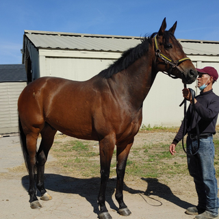 I adore this boy. He is so sweet and so well mannered, easy for anyone to work around and amateur friendly! Dont let his age fool you, his legs look A-mazing! Sound, sound, sound.. And not a blemish in sight. He is pushing 16'2 but easily can take up the leg of a taller rider bc he is such a tank.. I can only imagine how well he is going to fill out off the track. Can go in multiple directions and be a wonderful prospect!